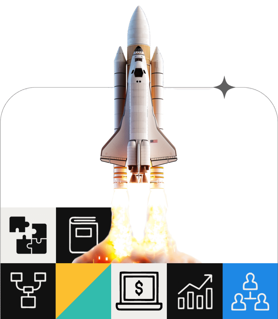 Nosso trabalho é cocriar a estrutura para todas essas etapas, transformando seu conhecimento em um negócio profissional e lucrativo, do início ao fim.